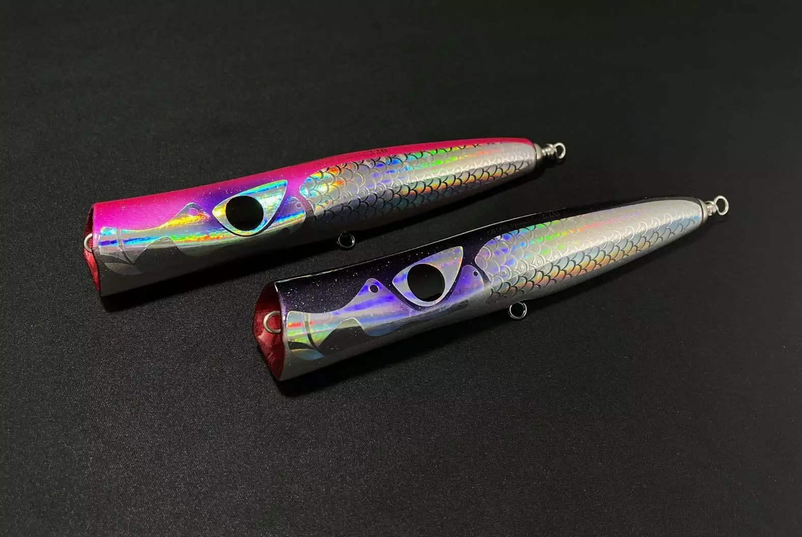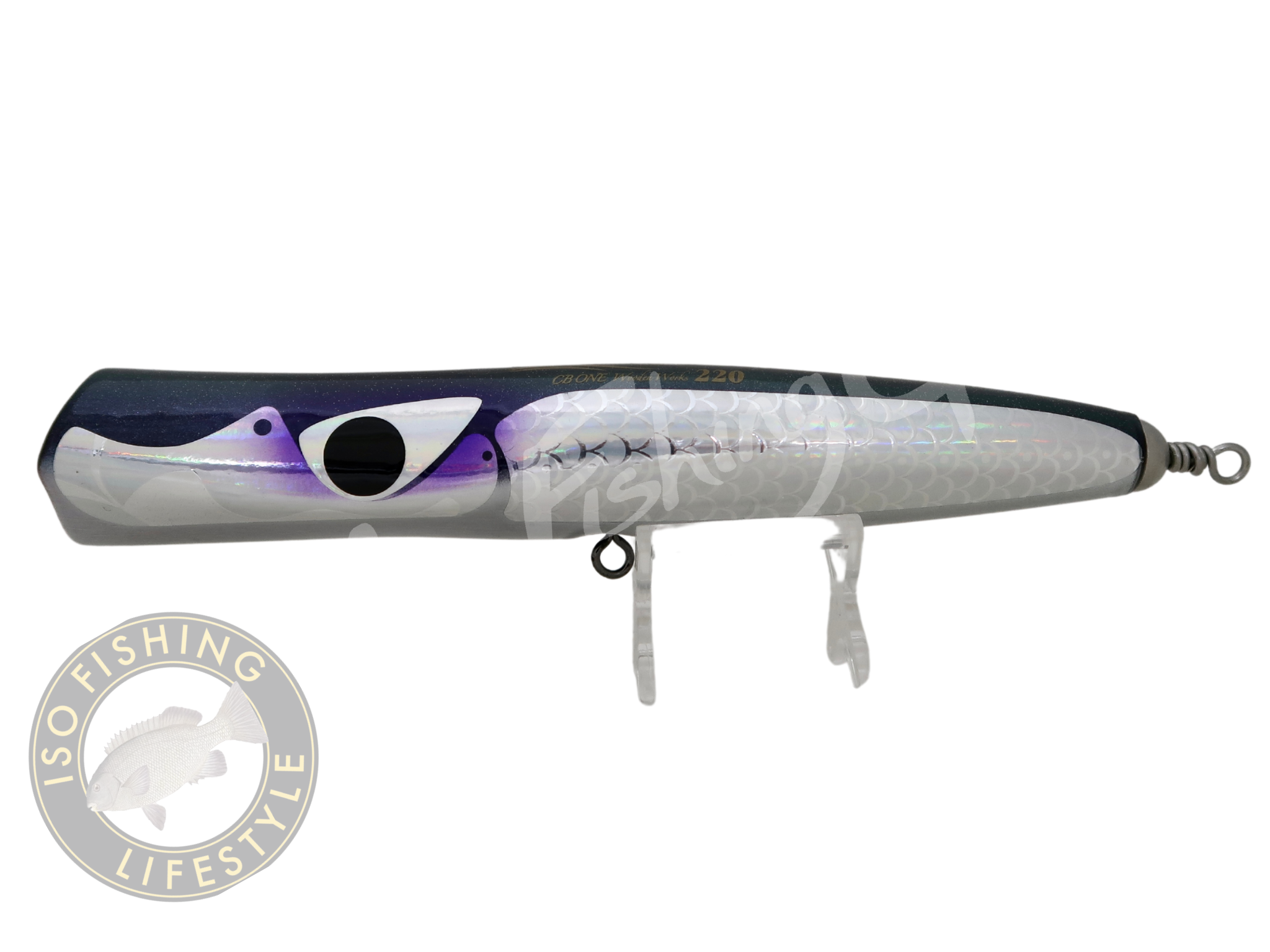 Bazoo, a popping popper that creates a large amount of bubbles appealing strongly to the target with a heavy pop sound. The columnar shape ‘ that reduces air resistance hits the longest distance of a CB One’s wooden lures. The unique cup shape enhances the amount of bubbles and water entanglement, and it is easy to reliably decide the swimming from the first action even under rough water surface.