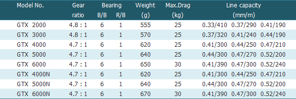 - Drag max 30kg with 6Â carbon &Â 6Â SUS washers (GTX 6000 / GTX 6000N)