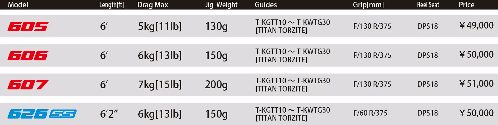 Excellent information transmission ability to sharpen the angler’s strategy that can detect the tide, jig movement, bottom condition, and even the movement of fish. In addition, excellent operability that enables jig control at will in order to execute the operation accurately. And the overwhelming lifting power generated from the sharp repulsive force that controls the running of tough green objects. In order to realize the elements required for sensitivity, operability and power & torque, and jig rod at an extremely high level, we have developed for a long time in all difficult fields in the sea near Japan.