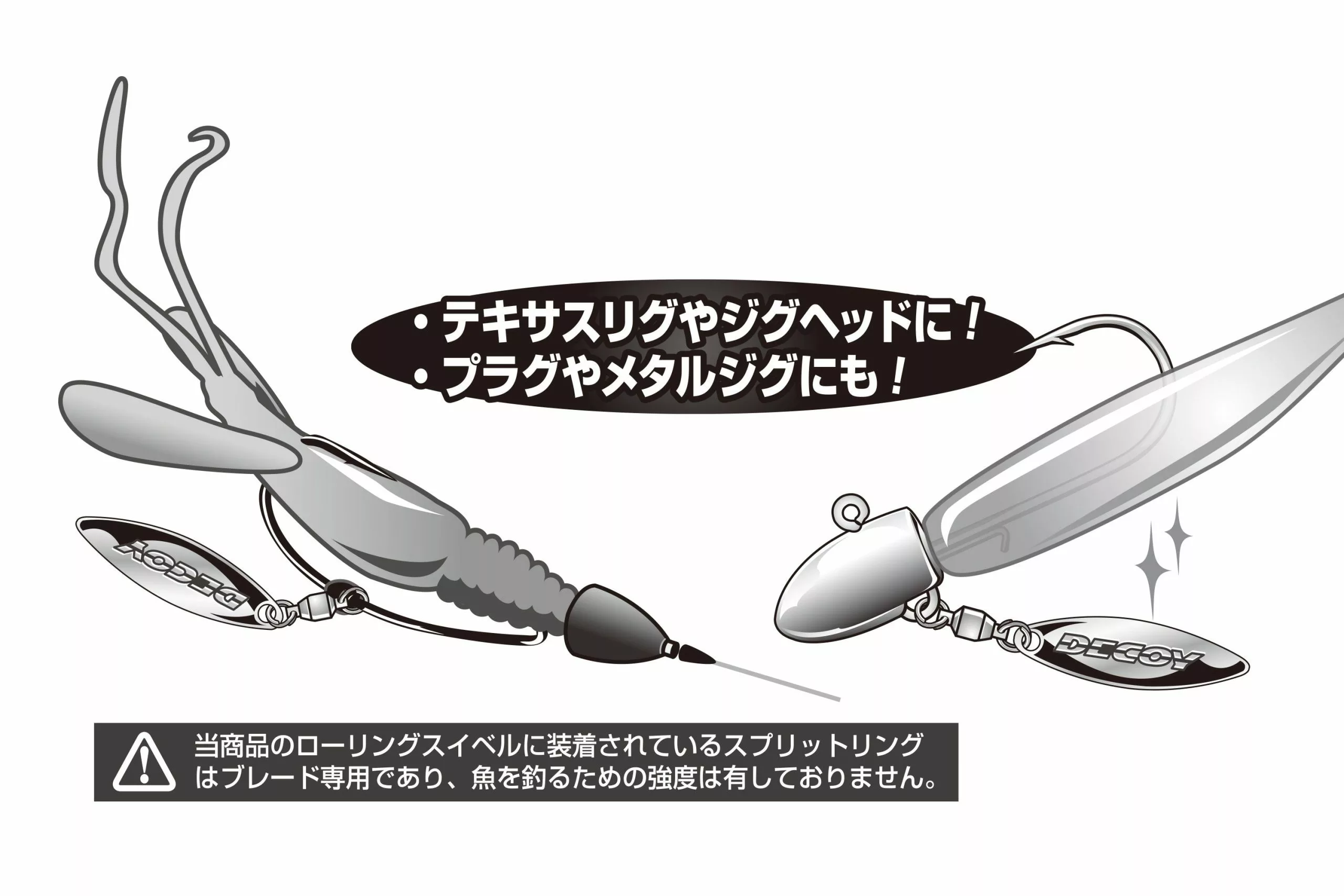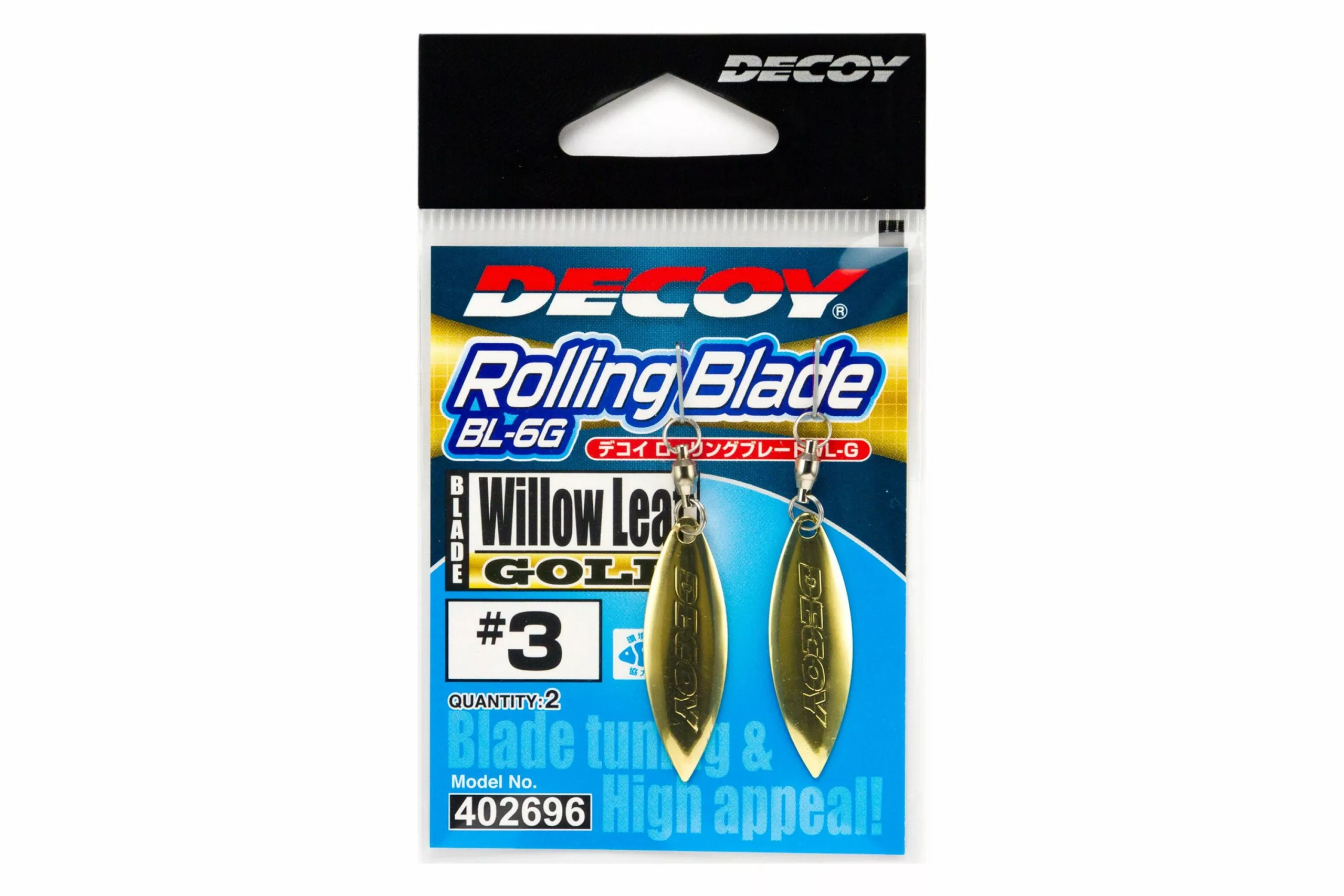 Decoy Rolling Blade Willow Leaf BL-6 has been premade with a high rotational ball bearing swivel and can be rigged onto various lures such as a plug (stickbait), jig head, spinner bait, frog etc. Flashing, bubbles and wave effects of blades when used both in fresh or salt have gained more attention in recent years. Using blades will significantly increase bite rates.
