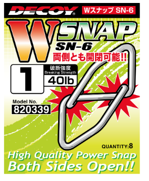 A heavy duty SW snap by Decoy. Made from a high quality stainless steel the SW is a heavy duty snap suitable for all types of lure applications. Featuring a simple power snap that opens on both sides making it easy to switch lures and also switch sizes of snaps without having to cut anything.