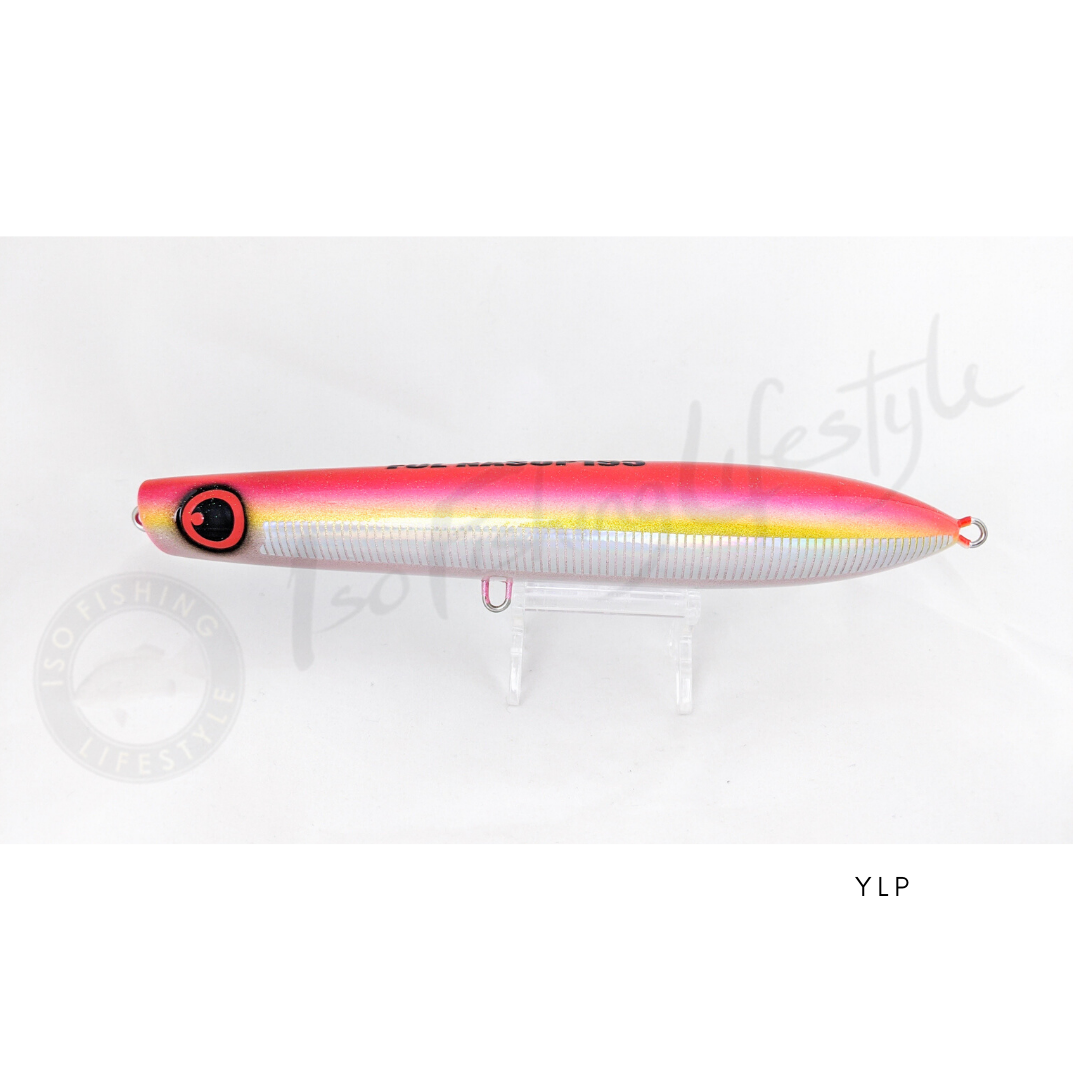The new Nasup lures from FCL are a classic skipping popper that can be fished at high speed or with a chopping walk the dog style retrieve. Weighted toward the tail the Nasup is an exceptional casting lure making it ideal for fishing areas when you cant get too close to structure you are fishing. The Nasup is extremely effective in rough or calm conditions as it will skate across the top of choppy or calm water. Â The Nasup 130 is perfect for light tackle casting targeting Kingfish, Trevally, Tuna, Emperors, Red Bass and Coral Trout and features the quality of finish that we have come to expect from FCL Labo!!Â