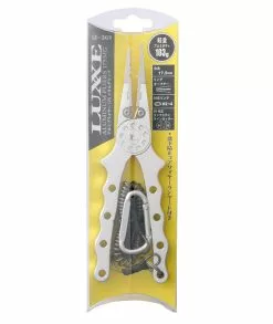 Designed a heavy duty plier for hook removing and opening split rings from a highly rust resistant stainless steel handles. Split ring sizes #2 ~ #4 are the ideal ring sizes to be used with this plier. The tungsten carbide line cutters built on the pliers can clean cut both PE and mono line. The rubber grip on the handles provides excellent grip even when wet with a smartly designed shape to hold comfortably.