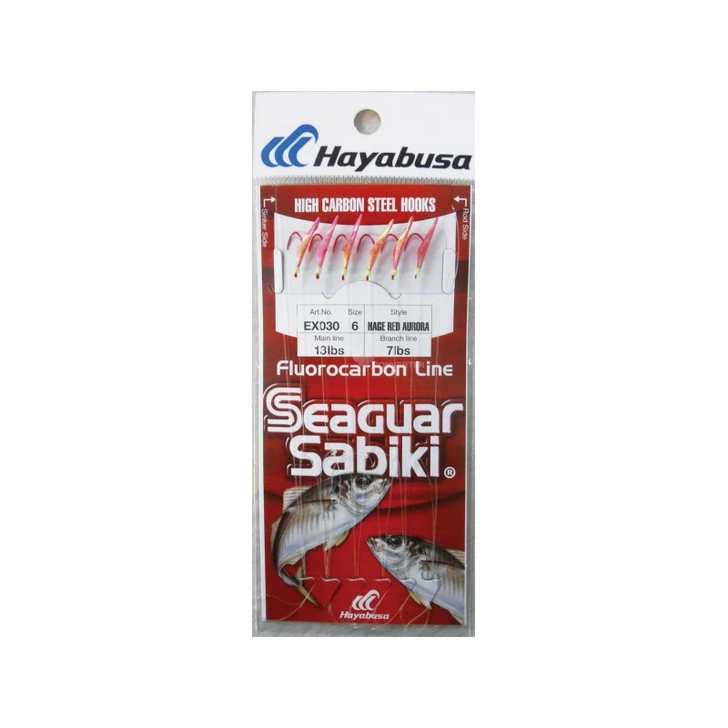 A high quality Japanese sabiki set ideal for yellowtail, slimy mackeral and many more species featuring a hage red fish skin with aurora finish tinsel for optimal attraction.Â