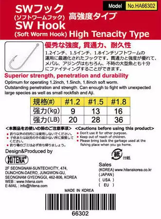 HITENA’s Soft Worm Hook is a high quality hook guaranteed to stay sharper for longer.