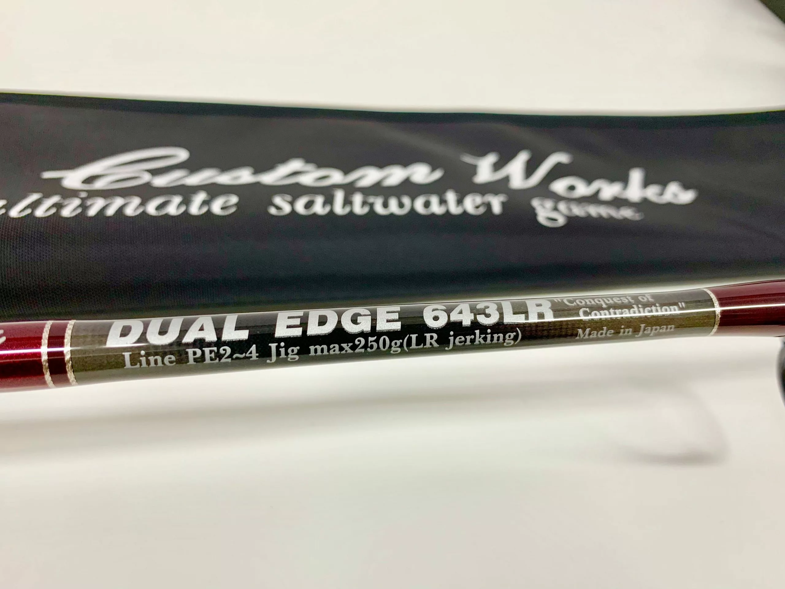 Designed after feeling the need to build a jigging rod which had a thin blank, light, soft at the top and have a strong backbone. The real fusion was a successful jigging model from MC WORKS, but the rod was bending too much when encountered with larger fish making it difficult to steer those larger fish. Due to the nature of jigging, we cannot choose which fish to hook when fishing. The Dual Edge was designed with a means to counter this problem.