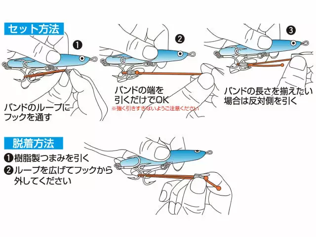 A simple hook band to keep your lures neat, reducing the chance for hooks from tangling with other lures and getting damaged. Fit with a gripper which simply tightens the band once adjusted to reduce tangling.