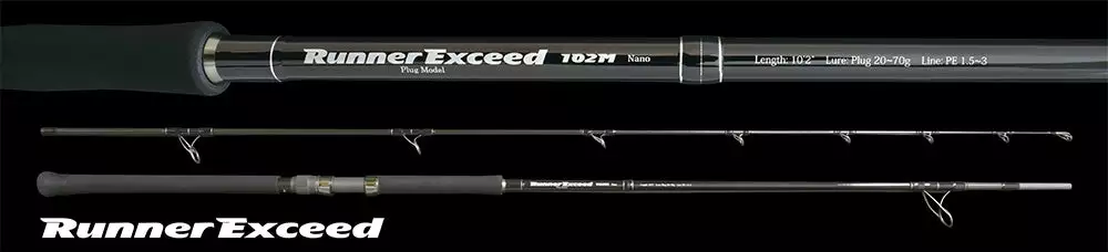 The Runner Exceed 102M is a light model is a long awaited addition to the Runner Exceed series suitable for topwater fishing as well as jigs. Equipped with a soft tip that pursues the sport of topwater fishing with ease such as medium-sized stickbaits and diving pencils as well the 20g class minnows and even shore jigs up to 90 g. The 102M is ideal when the fish are in the distance or strike range is deep.Â
