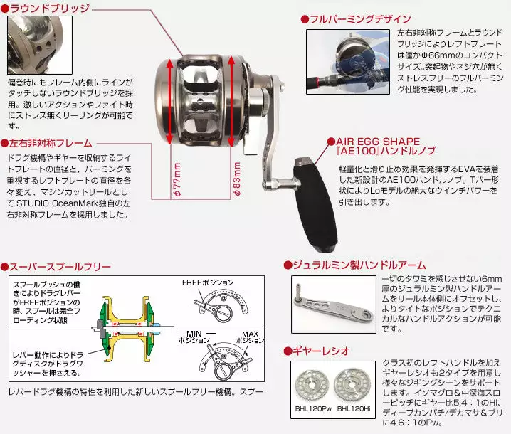 Palming of the reel is one of the most important designs in our mind. A non-symmetrical frame allows for a more natural feel while reeling and less stress at the grind.