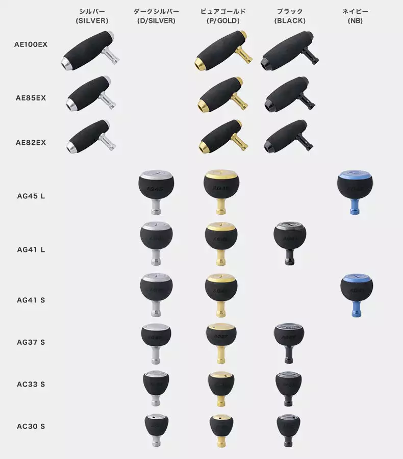 | Shimano A type & Daiwa S type | HN AG41/S | Dark silver, pure gold, navy | 27 g | |