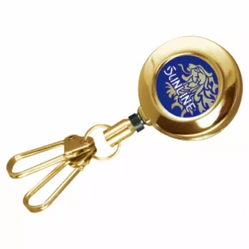 A stainless steel dual pin on reel by Sunline featuring a 45cm retractable leash to secure line cutters and accessories.