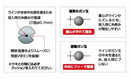 Unlike a normal gun ball, the line passes through the slit in the center of the main body freely. Since the gun ball body does not shake when thrown in, unintended entanglement is drastically reduced. It is also useful when you do not want to directly convey the weight of the weight to the fish, such as when eating is astringent.